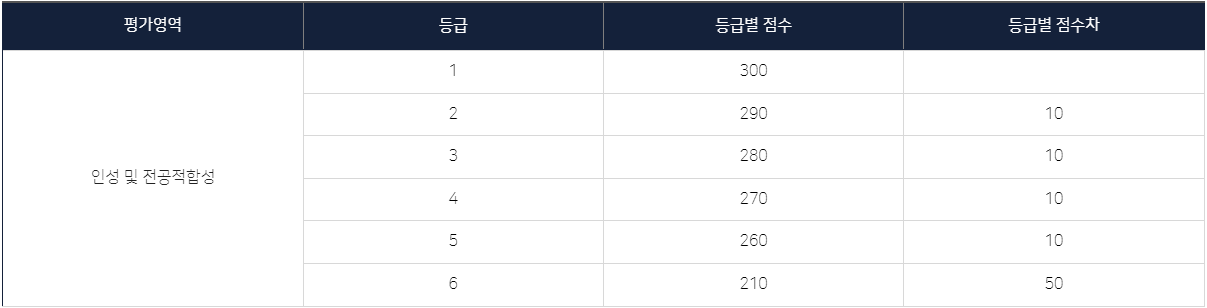 전형 내 동일 학부(과) 면접이 2개 이상 분반되는 경우 우리대학교 자체 성적 산출공식에 따라 표준점수를 적용합니다.