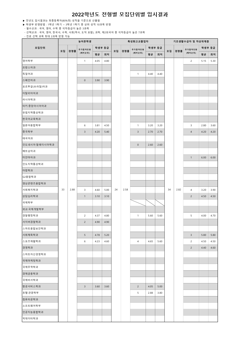 전년도 입시결과 수시 2022학년도 - 정원외(농어촌_특성화_기초생활)전형 첨부파일전년도 입시결과 정원외80.pdf(56.2K) 2022학년도 - 정원외(농어촌_특성화_기초생활)전형 2022. 4. 7조회수5,743 2022학년도 - 체육경기실적우수…목록[2022학년도] 일반편입학 최종…