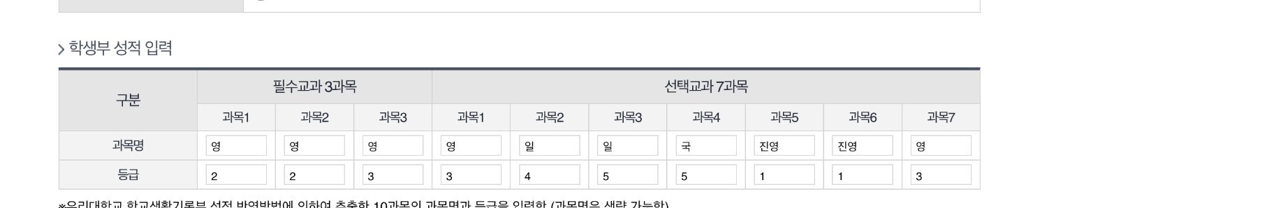 관리매니저 2023. 7. 10 안녕하십니까, 입학관리팀입니다. 학생분의 성적표를 보여주셔야 정확하게 확인이 가능합니다. 카카오톡 플러스친구 '부산외국어대학교' 또는 20216832@bufs.ac.kr 로 성적표 이미지를 보내주시면 확인 후 상담 도와드리겠습니다. 감사합니다^^ 오늘도 행복한 하루 보내세요:) 안녕하십니까, 입학관리팀입니다. 학생분의 성적표를 보여주셔야 정확하게 확인이 가능합니다. 카카오톡 플러스친구 '부산외국어대학교' 또는 20216832@bufs.ac.kr 로 성적표 이미지를 보내주시면 확인 후 상담 도와드리겠습니다. 감사합니다^^ 오늘도 행복한 하루 보내세요:)