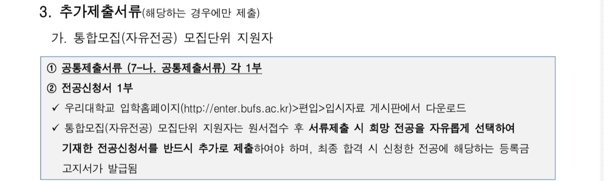 3.추가제출서류에서 가.통합모집 모집단위 지원자 부분에