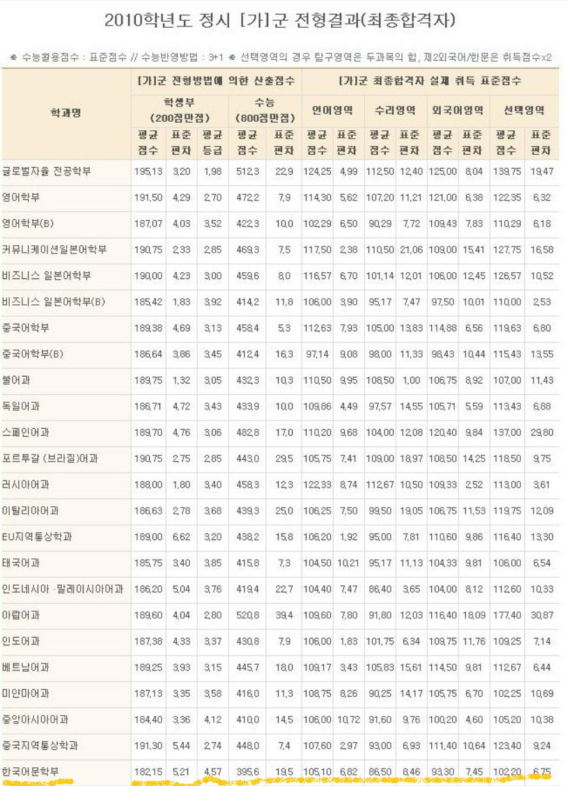다름이 아니라 저는 2010년 당시 부산외대 정시가군에 지원할 성적이었으며