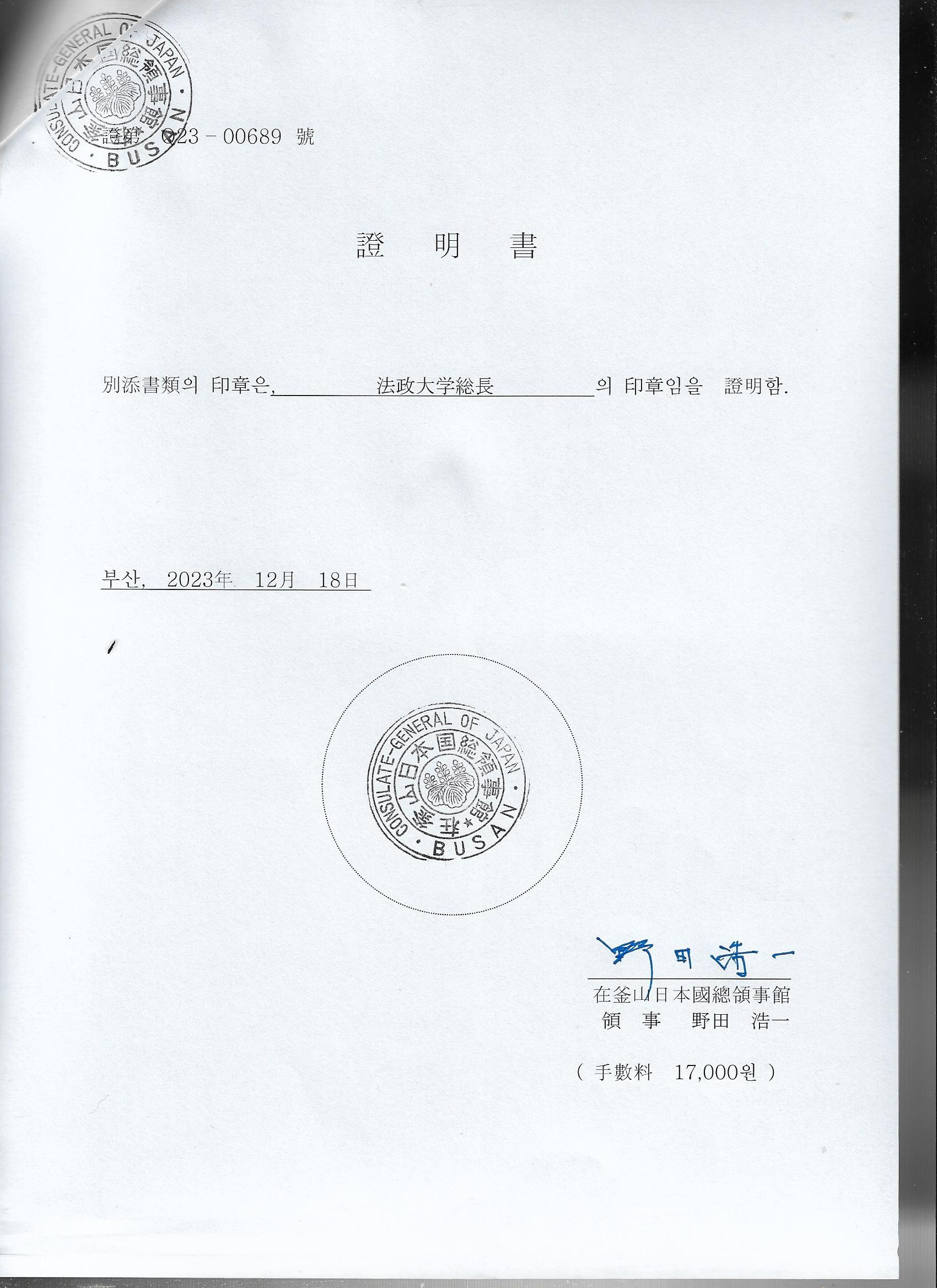 영문 성적증명서에 영사확인을 받았습니다.