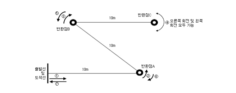 • 3) 회전하는 방향은 출발→왼→오→오(왼)→왼→오→도착이 되며, 1/100초 단위로 계측·기록한다.