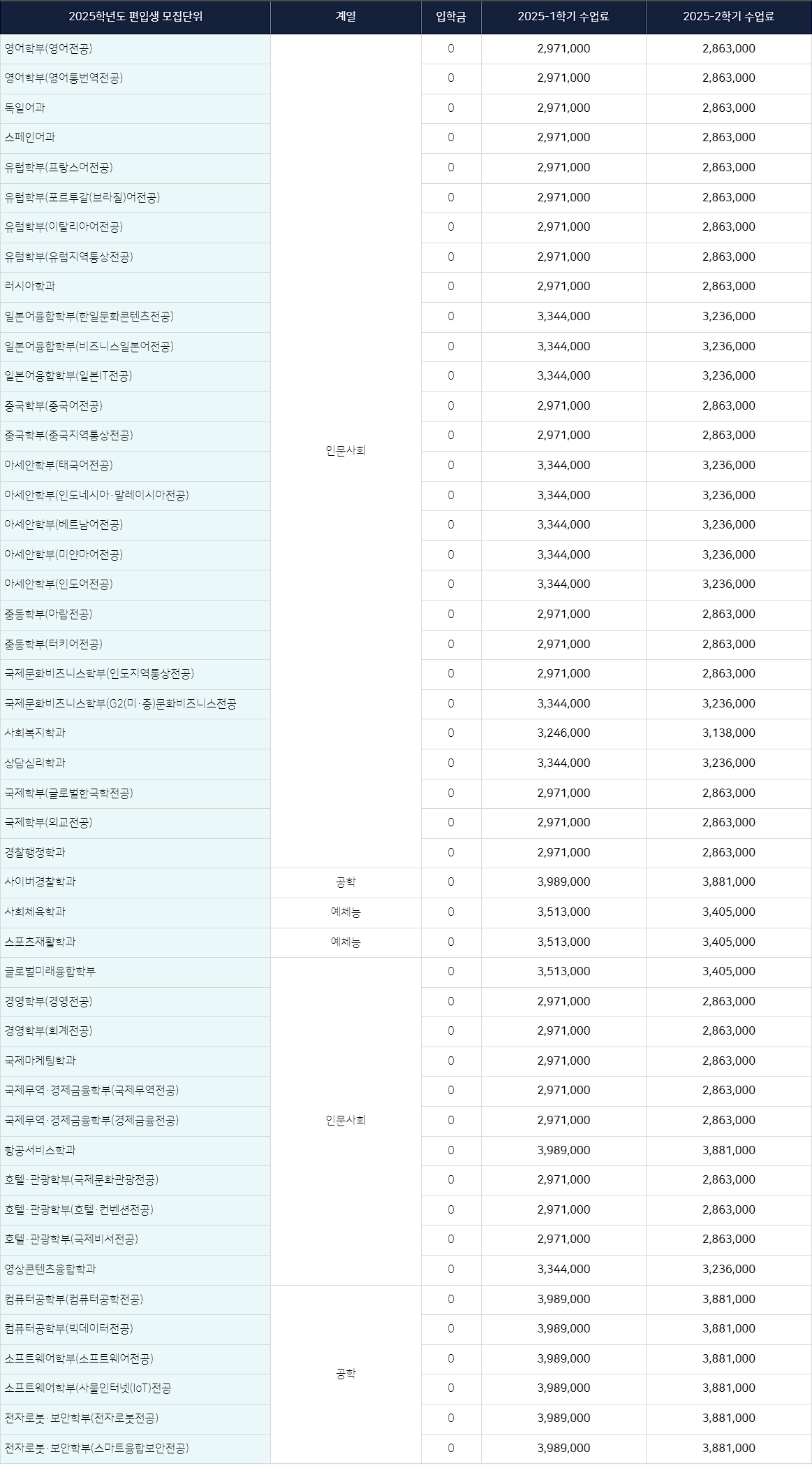 ※편입생에게는 전공기초학습장학금이 지원됩니다. (2025학년도 편입생 500,000원)
